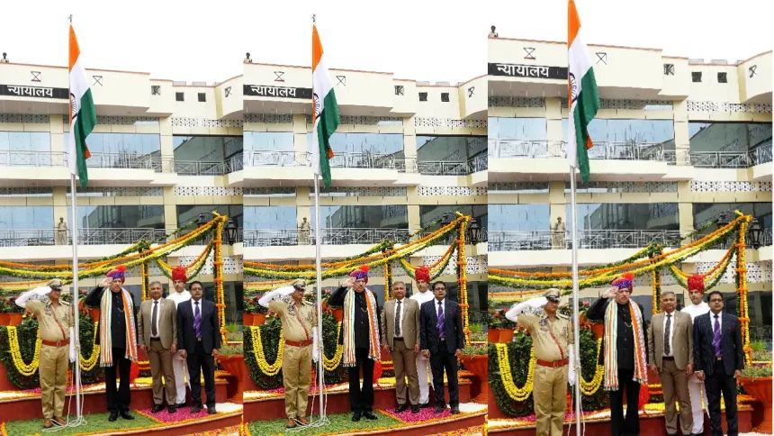 सुबह ठीक 8:30 बजे राजस्थान उच्च न्यायालय के न्यायाधीश श्री संजीव प्रकाश शर्मा ने ध्वजारोहण किया। इस दौरान राजस्थान पुलिस के जवानों ने उन्हें गरिमापूर्ण सलामी दी।