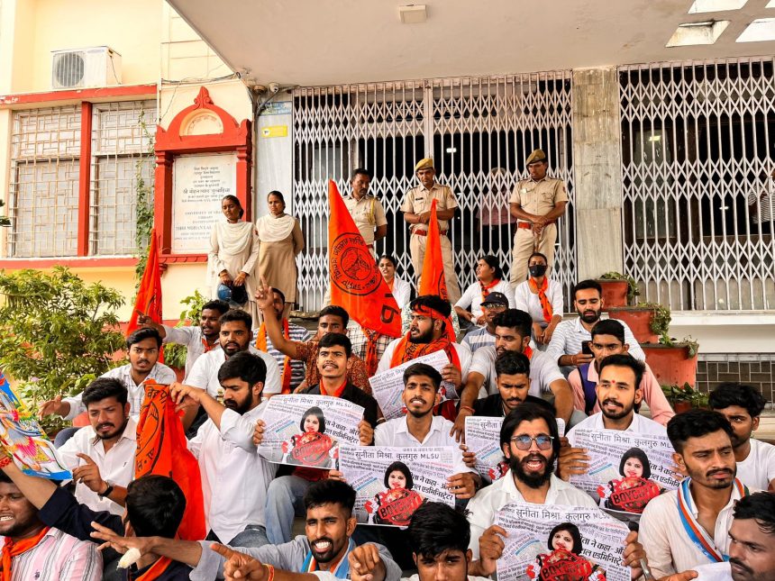 एबीवीपी और एनएसयूआई समेत कई छात्र संगठनों ने इसे मेवाड़ और भारतीय इतिहास का अपमान बताते हुए यूनिवर्सिटी कैंपस में प्रदर्शन शुरू किया। बुधवार को स्थिति तब बिगड़ी जब छात्र बड़ी संख्या में कुलपति के दफ्तर के बाहर जमा हो गए, गेट पर ताला जड़ दिया, बिजली काट दी और लगभग छह घंटे तक कुलपति को अंदर कैद रखा। एबीवीपी ने राज्यपाल को पत्र लिखकर तत्काल कार्रवाई की मांग की।