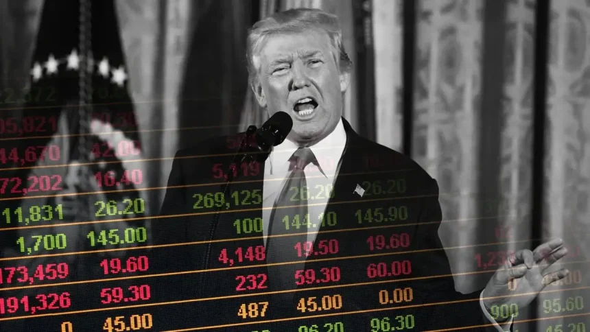अमेरिकी राष्ट्रपति डोनाल्ड ट्रंप द्वारा भारतीय उत्पादों पर आयात शुल्क को 25 प्रतिशत से बढ़ाकर 50 प्रतिशत किए जाने के बाद गुरुवार को भारतीय शेयर बाजार में भारी बिकवाली देखने को मिली। बीएसई सेंसेक्स 399.46 अंकों की गिरावट के साथ 80,144.53 अंक पर और एनएसई निफ्टी-50 130.60 अंक लुढ़ककर 24,443.60 अंक पर पहुंच गया।